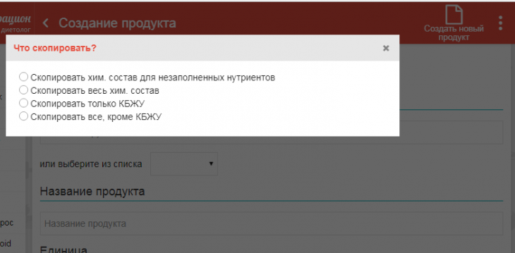 добавления продукта.