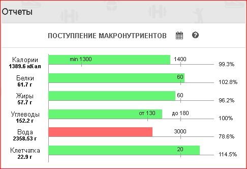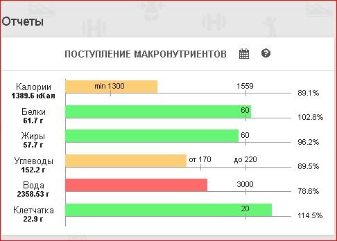 Пуфыстик написал:я настройки не трогала, просто занесла ходьбу в дневник тренировок и получился совершенно ненужный мне сдвиг по общей калорийности и по углеводам. А настройки у меня свои стоят, рассчитанные специалистом специально под меня. И раньше они не зависели от того, вносила я тренировку или нет и это было здорово. Потом по "многочисленным просьбам трудящихся" сделали то, что имеем сейчас - не зависимо свои настройки или нет, при внесении тренировки все сдвигается, особенно угли. А Здесь в заголовке Сергей пишет - "По многочисленным просьбам трудящихся в раздел "Личные данные" добавлены способы расчета КБЖУ, на которые не влияет заполнение дневника тренировок". Но у меня все равно влияют. Вы пишите, что у вас нет и я за вас рада
