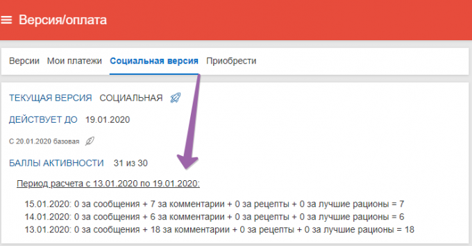 В разделе "Версия/Оплата" -> "Социальная версия" добавлена подробная информация о том как были рассчитаны баллы за социальную активность.