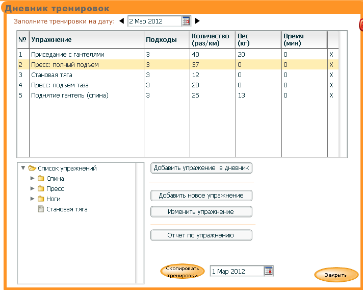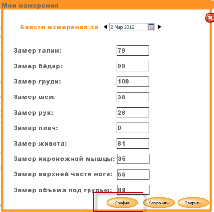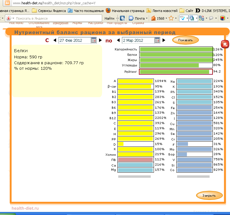 В "дневном рационе" выбираем дату и нажимаем кнопку