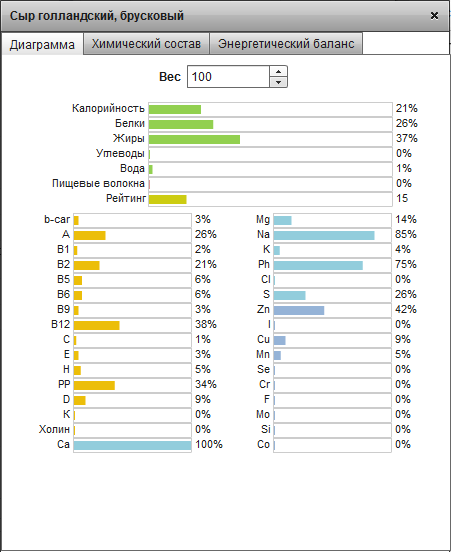 рациона нет. А просто из названий в меню невозможно ничего