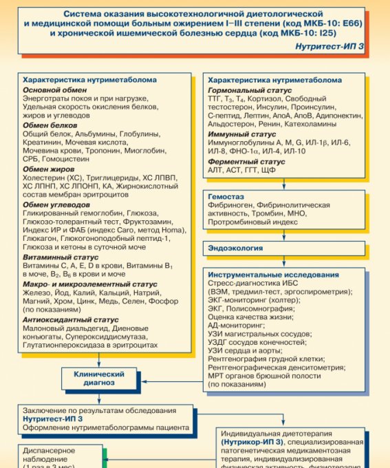 - Лабораторная диагностика на примере ожирения 1степени, см. рисунок из http://www.dietology-ion.ru/assets/files/Nutritest.pdf
