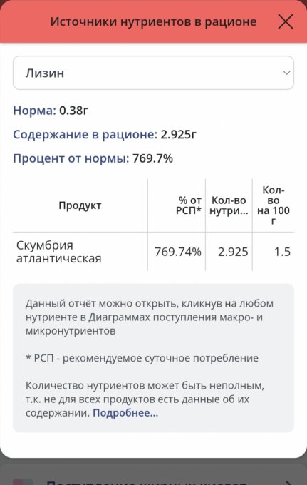 свой приём пищи. Но в диаграммах лизина всё равно нет, поскольку