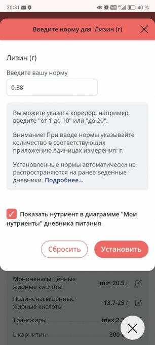 лизин, а второе фото это те продукты которые я съела за сегодня. И