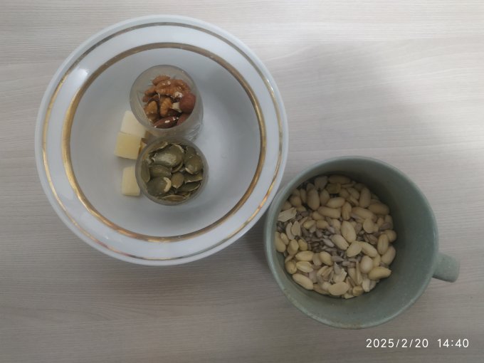 жирную еду (орехи с сыром) с ужина на обед, т.к. она долго
