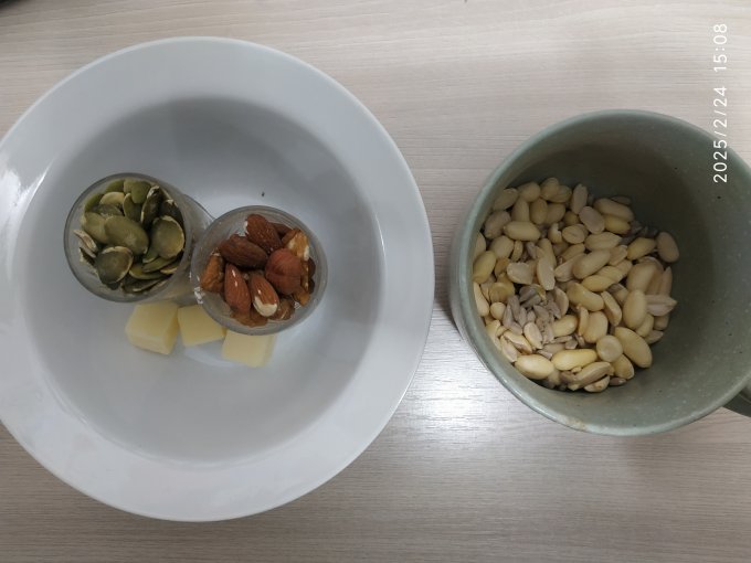жирную еду (орехи с сыром) с ужина на обед, т.к. она долго