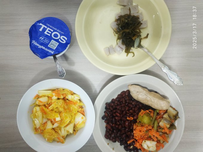 Количество раз приема пищи от 2 до 5, в зависимости от моего удобства. Но принять какое-то количество и его придерживаться в одно и то же время, а не так, что каждый день по-новому. Принимаю с 19.02.2025 трехразовое питание. В 10, 14, 18.