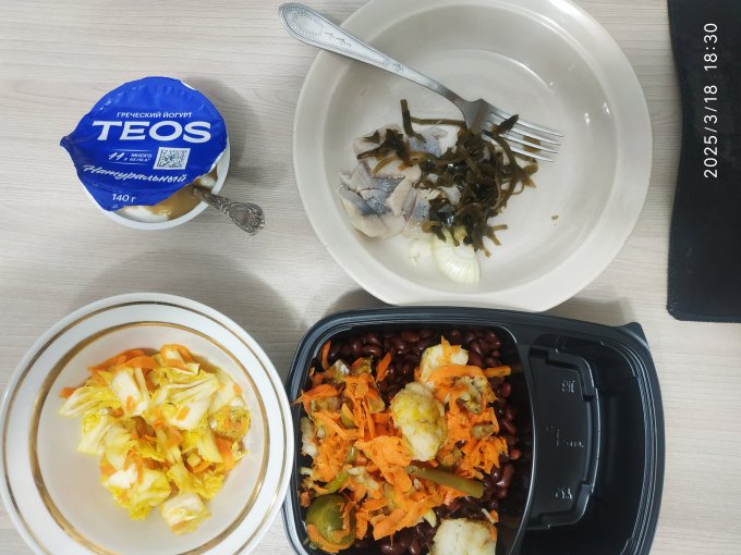 Количество раз приема пищи от 2 до 5, в зависимости от моего удобства. Но принять какое-то количество и его придерживаться в одно и то же время, а не так, что каждый день по-новому. Принимаю с 19.02.2025 трехразовое питание. В 10, 14, 18.
