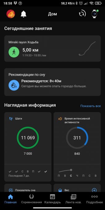 7. Питание. С 28.02.2023 установить калорийность ведущую к снижению веса еженедельно на 1-1,5 кг.. Как комфортно. Дефицит должен быть не более 20%. (МЗР оценивает расход в 4200 кКал, гармин в 4100, т.е. примерно одинаково. МЗР рекомендует употреблять 3100, а гармин 3 000, т.е. так же примерно одинаково). Пробовать подбирать.