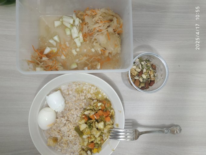 ежедневно 100 гр. овсянки (ну или хотя бы 75 пока). И 100 гр.