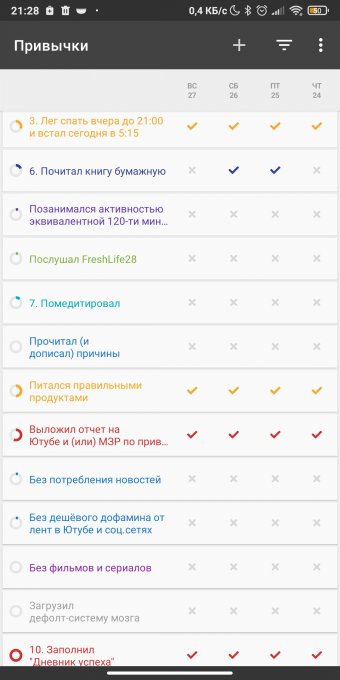 Например, встал в 9:00. Цель на завтра встать в 8:45. Для её