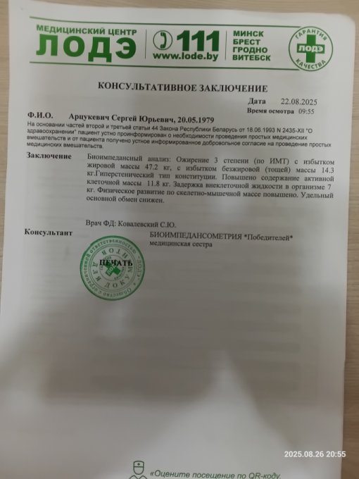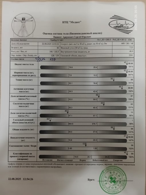 Для контроля сделал биоимпедансный анализ.