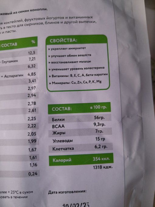 Всем доброго дня! Получила сегодня на Озоне веганский протеин из семян конопли. Упаковка отличная, качественный замок. Попробовала сразу, чтобы понять подойдёт мне вкус или нет. Вкус мне понравился. Ореховый слабовыраженный, что -то есть от вкуса семян подсолнечника.