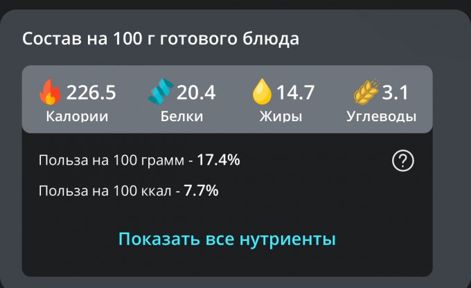 | Кол-во | Калории | Белки | Жиры | Углеводы | |