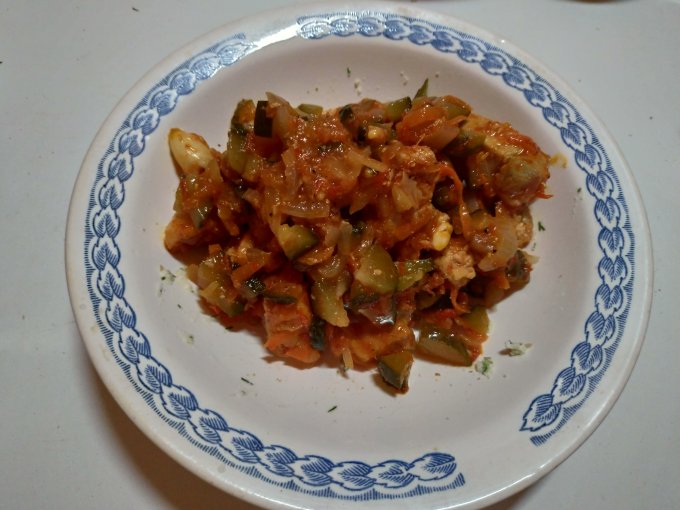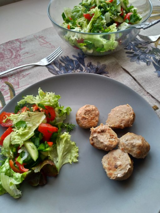 Наутро -- суп, в обед -- окрошка, вечером -- свинина и любимый салат из капусты с огурцом и лимоном. Без перекусов пока тяжело. Утешаю себя тем, что это хотя бы не сладости-печеньки.