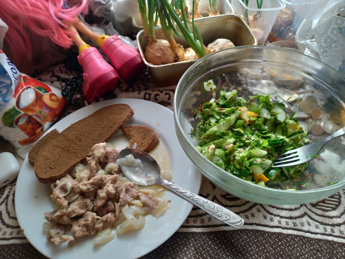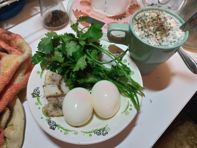 | Суп с крапивой, зелёным горошком и сухими грибами |