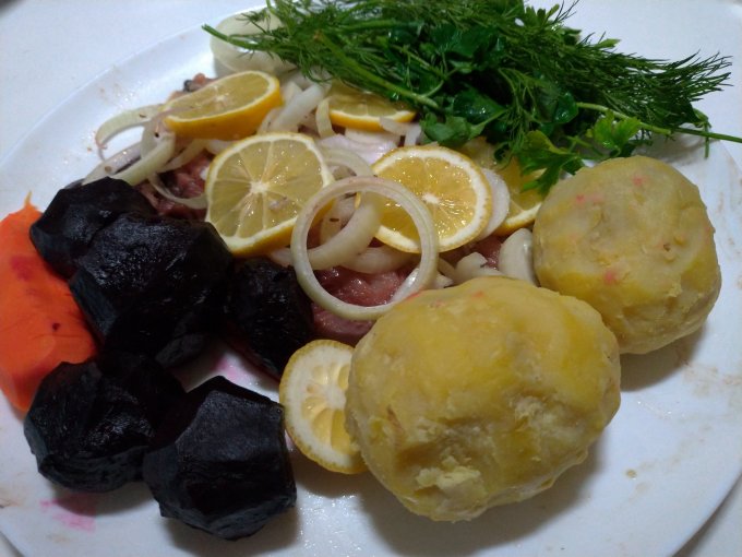 Обед: сельдь спрятанная в овощах