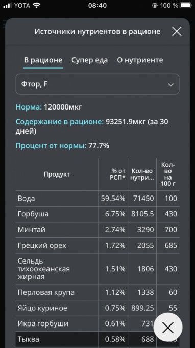 По таблице нутриентов у меня в рационе тотальный дефицит фтора.