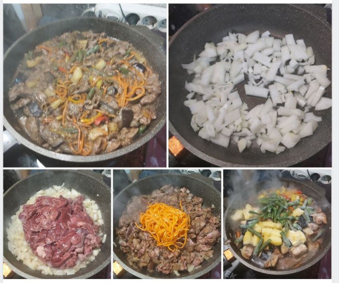ее тушу вместе с куриными сердечками и луком. А вот с говяжьей или