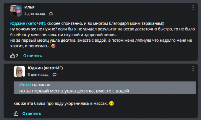 Суть в том, что углеводы (через гликоген) действительно «тянут» за собой воду, и именно поэтому вес может меняться на 1–2 кг без связи с жиром.