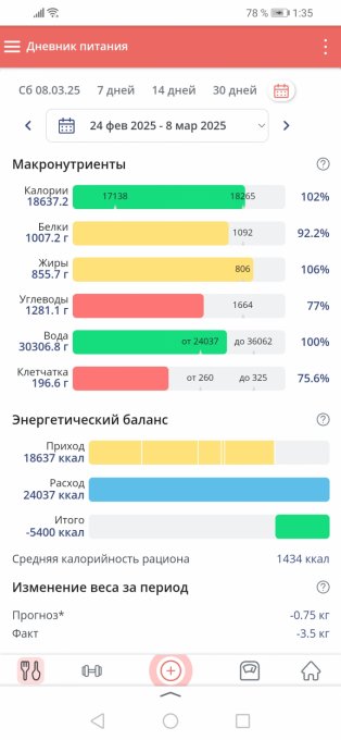 | Итого за день | 4460 | 1833 | 65 | 92 | 81 |