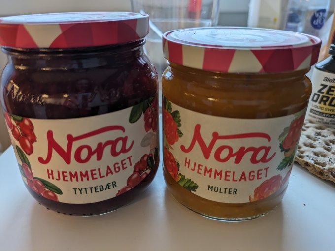 Купила брусничное (клюквенное?) и морошковое варенье.
