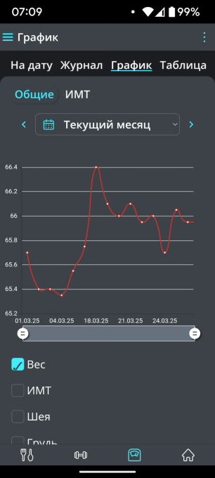 заметила никакой закономерности в колебаниях веса, тем более, что