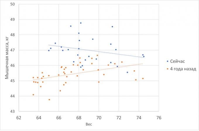 Я привела теоретические расчеты, что тощая масса у меня изменилась очень мало