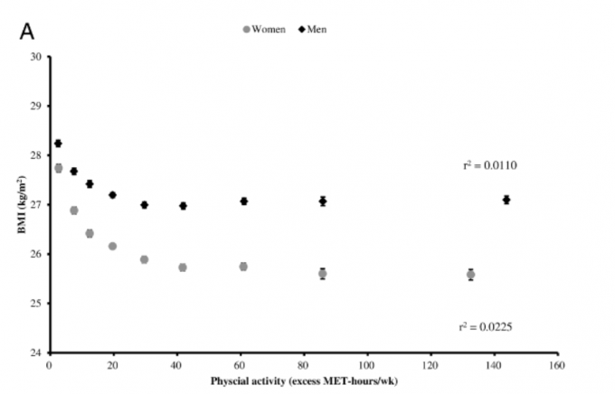 снижаются с активностью, но 1) снижаются где-то до 40 МЕТ-часов в