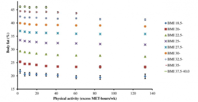активности. Потом замерили их ИМТ и процент жира с помощью