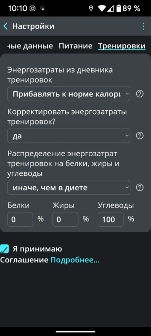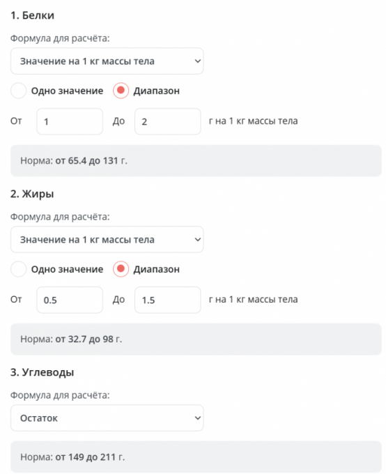 нормы белков и жиров, а на углеводы - "Остаток". Правда, на