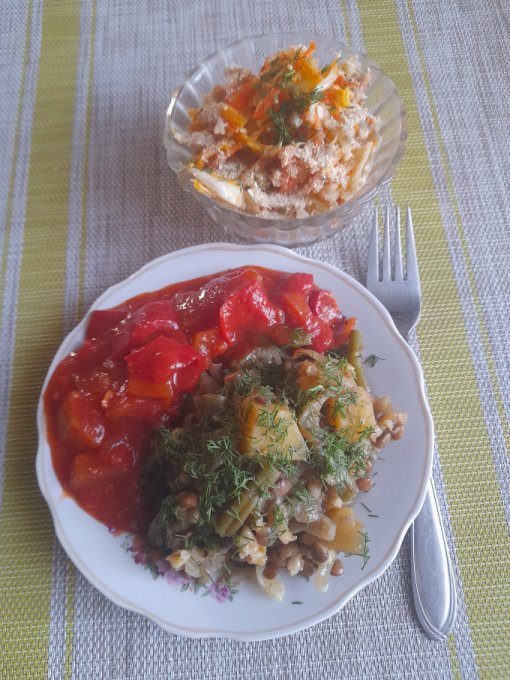 | Овощное рагу с чечевицей и перловкой |