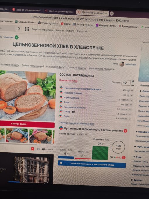 Чтобы уменьшить калории сама вчера испекла хлеб из цельнозерновой муки. Рецепт нашла на просторах интернета, добавила туда только овсяных хлопьев. Подсчитала сколько ККал в сто граммах - всего 205!!! Самое то!