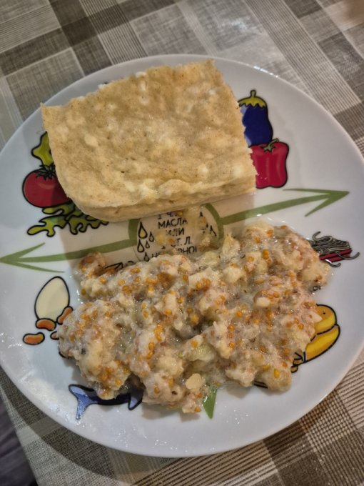 Калорийность - 165.1 кКал; белки - 14.3 г; жиры - 5.6 г; углеводы - 12.9 г на 100 г.