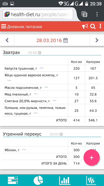 БЖУ по приемам пищи и каждому продукту в самом дневнике. Это такая