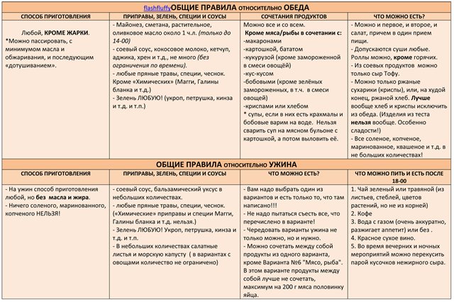 можно). Более детально правила и списки разрешенных продуктов – в