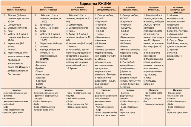 и/или гарнир, и даже десерт из списков разрешенных продуктов.