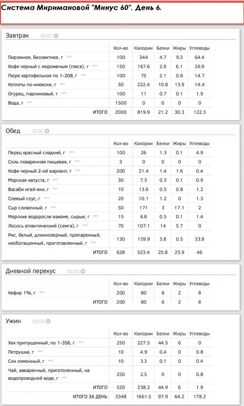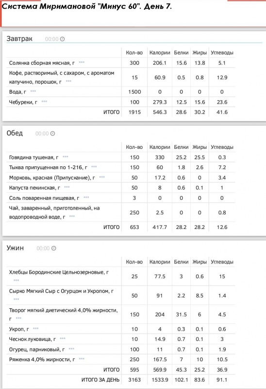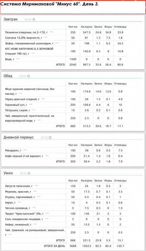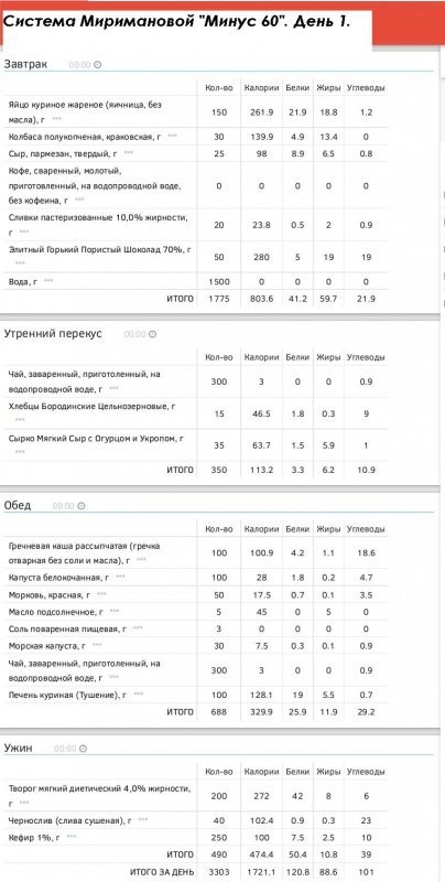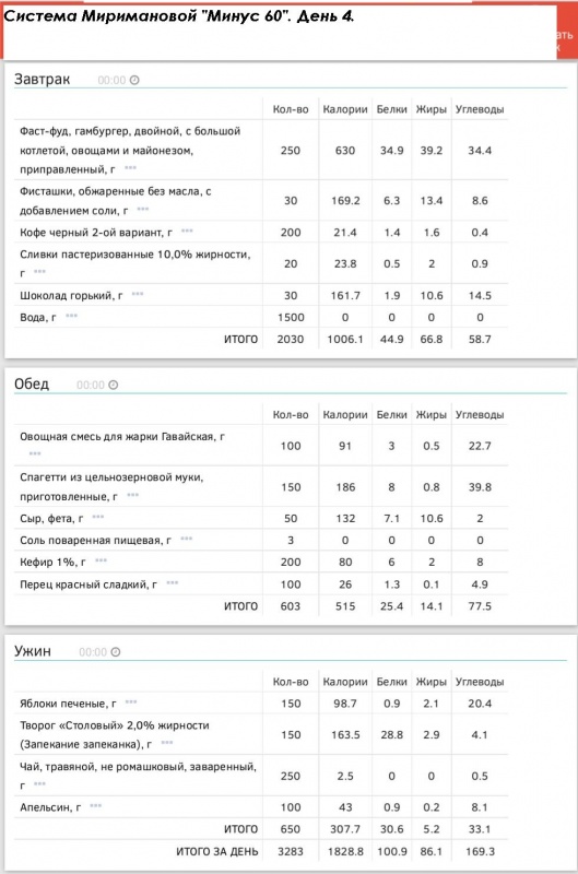 самого образцового худеющего (на завтрак указано максимально
