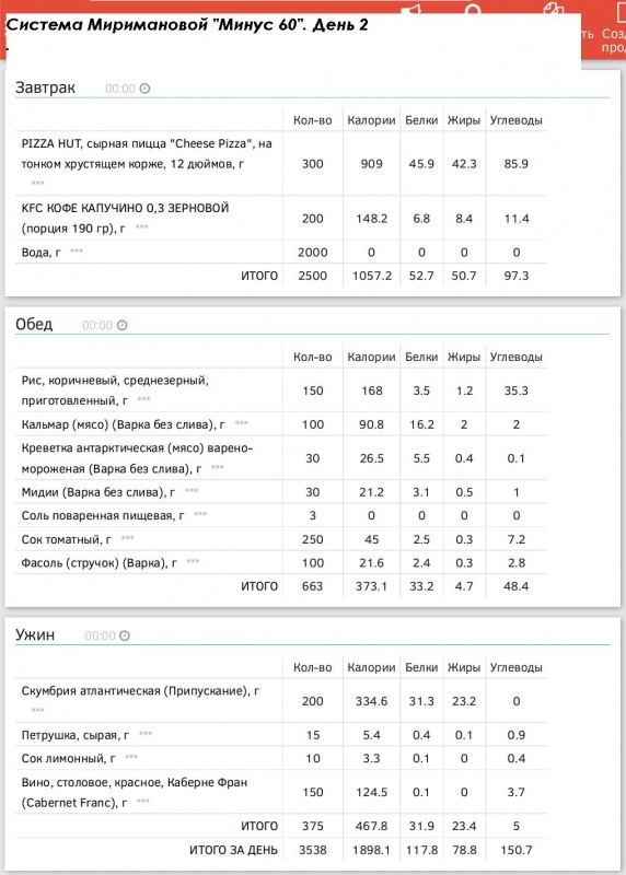 в течение дня. И, хотя по рекомендации системы, все приемы пищи