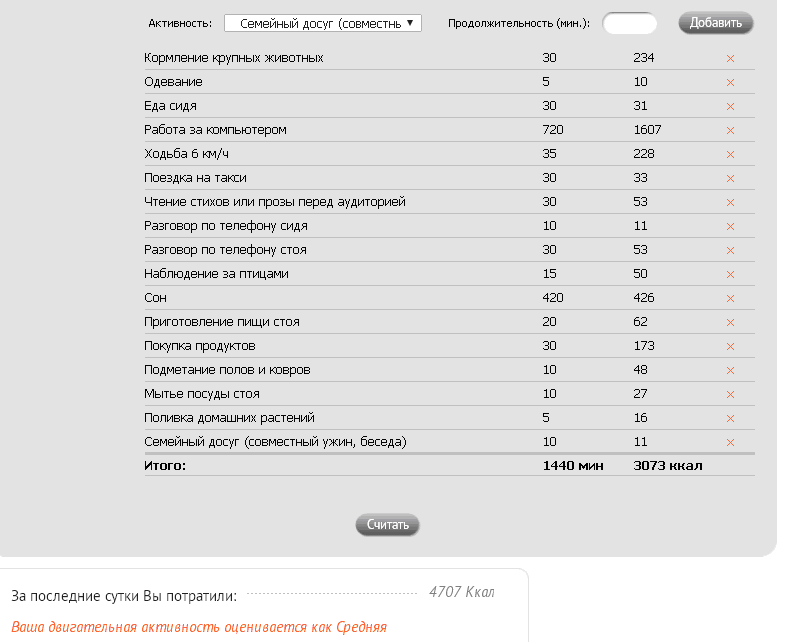 и посчитала своё количество энергозатрат. Цифра меня очень