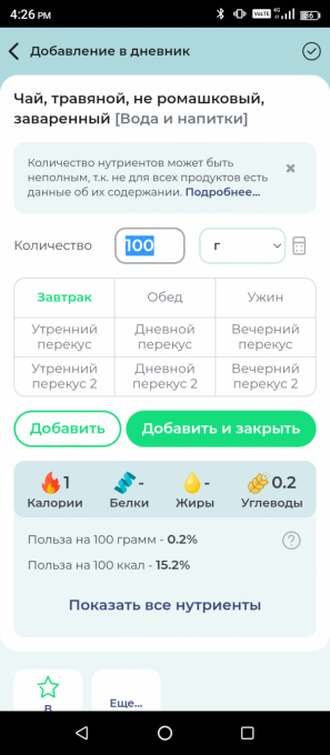 калорийность настоя.Но я бы использовала чай неромашковый из