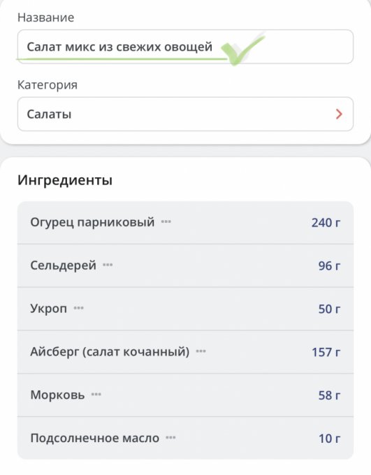 | Калории | 162.8 кКал | 9.67% | |
