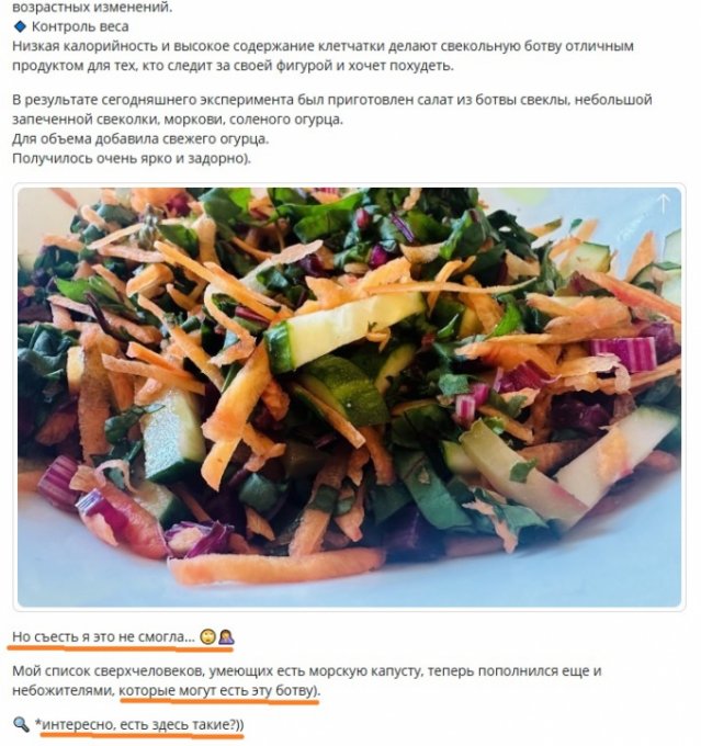 В супермаркетах у нас в отделах зелени вижу свекольные ростки в качестве микрозелени. Наверное, они более съедобны, чем ботва, и не менее полезны.