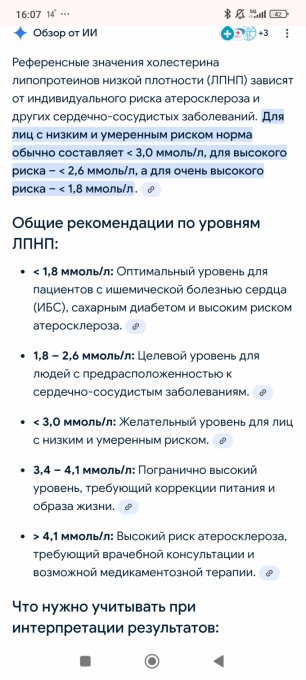 У меня немного другие референсы, по низкой плотности он до 3, а у вас он до 4,11, у меня 2, но врач не придирается к этому значению, говорит все в норме.