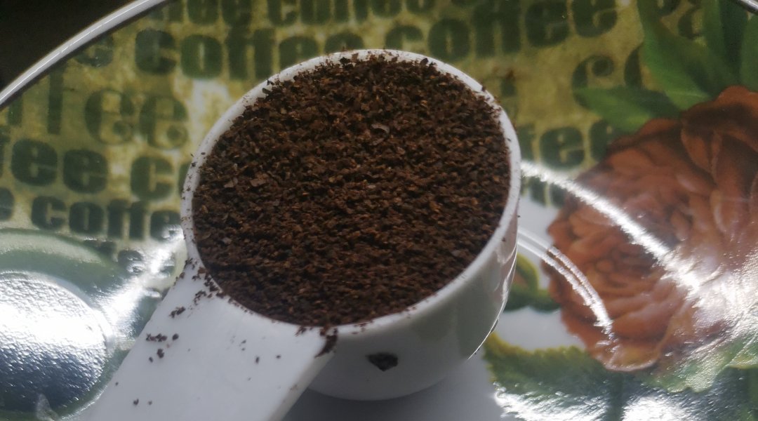 Отмеряли мерной ложкой молотый кофе 7 грамм.