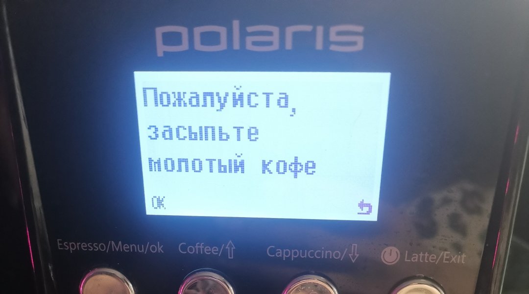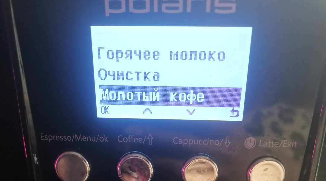 Кофе натуральный молотый, приготовленный к кофемашине. На режиме Кофе.