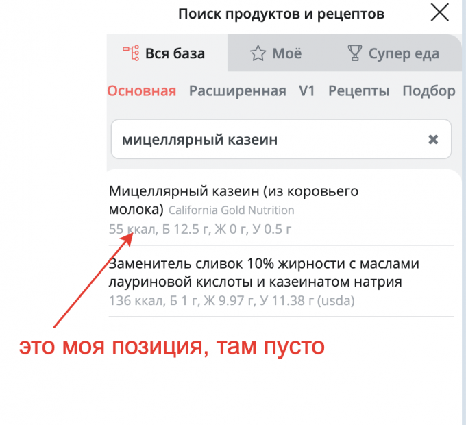 Я 99% продуктов нахожу в основной базе. Остальные либо ввожу