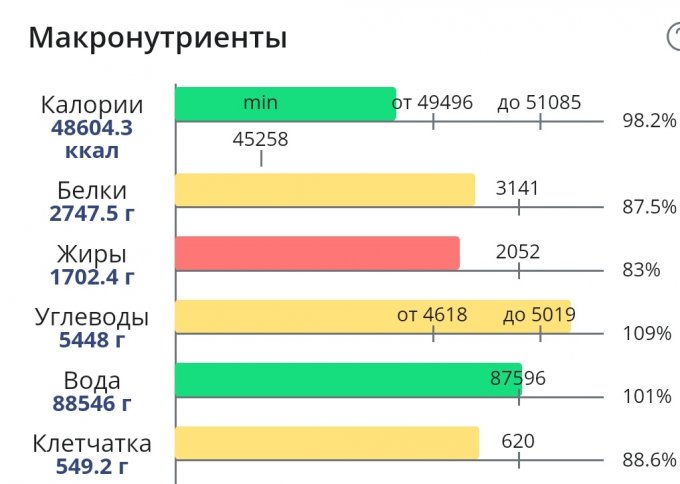 по углям, недобор по белкам и жирам. В целом в целевую калорийность