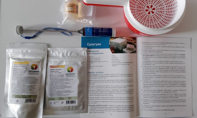 входит инструкция по приготовлению, сычужный фермент, закваска с