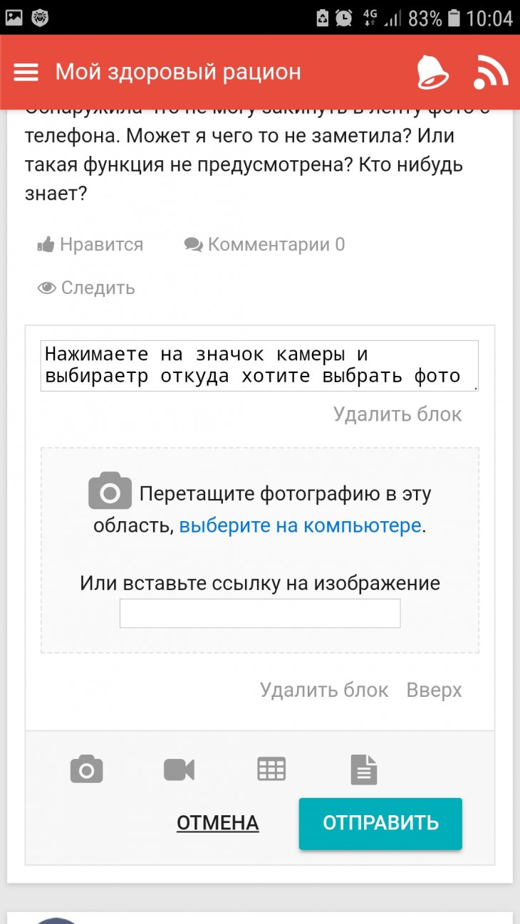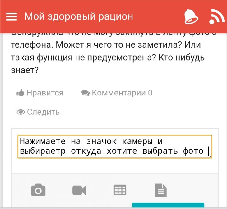 Обнаружила что не могу закинуть в ленту фото с телефона. Может я чего то не заметила? Или такая функция не предусмотрена? Кто нибудь знает?